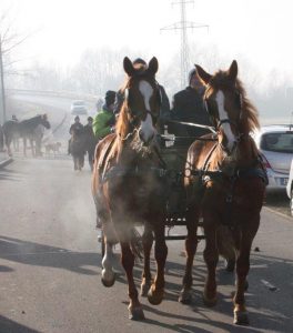 Vožnja vpreg in priprava mladega konja za vožnjo.